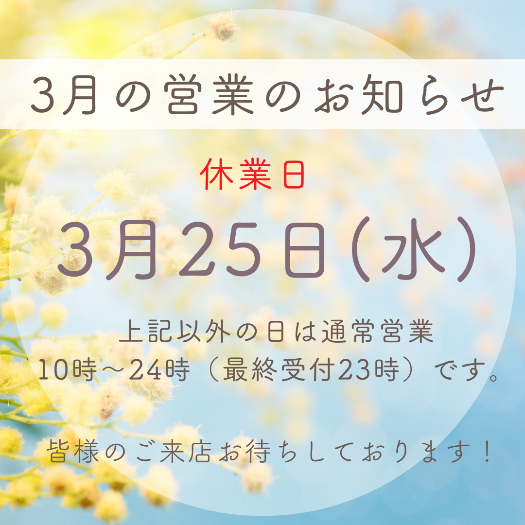 3月25日(水)は休業ひとさせていただきます。
